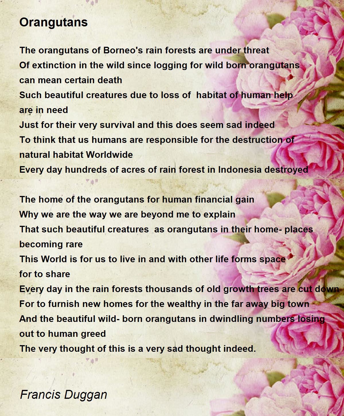 Orangutans Poem by Francis Duggan Poem Hunter Sumber : www.poemhunter.com